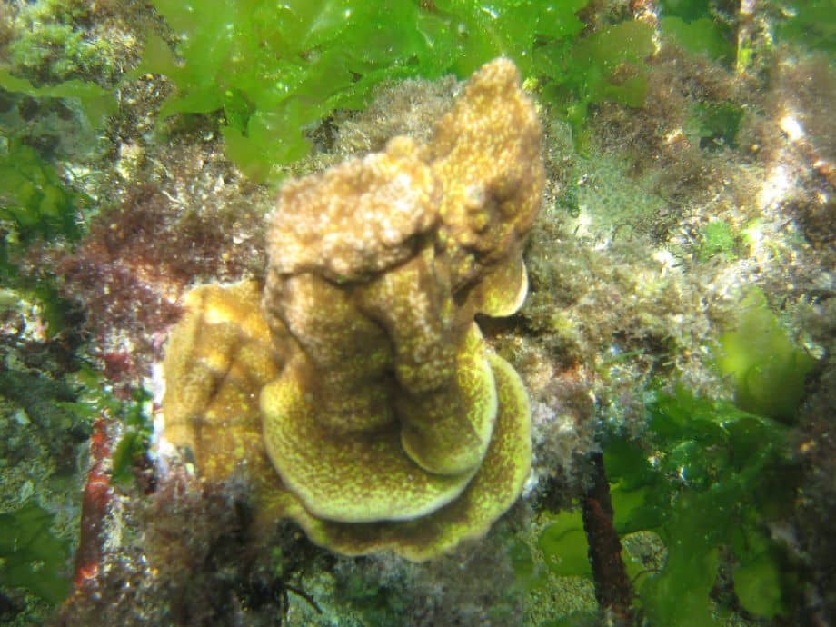 אלמוג מונטיפורה שולחנית או חובקת סלעים זו סתגלנית יחסית אך לא מומלצת למגדלים מתחילים.